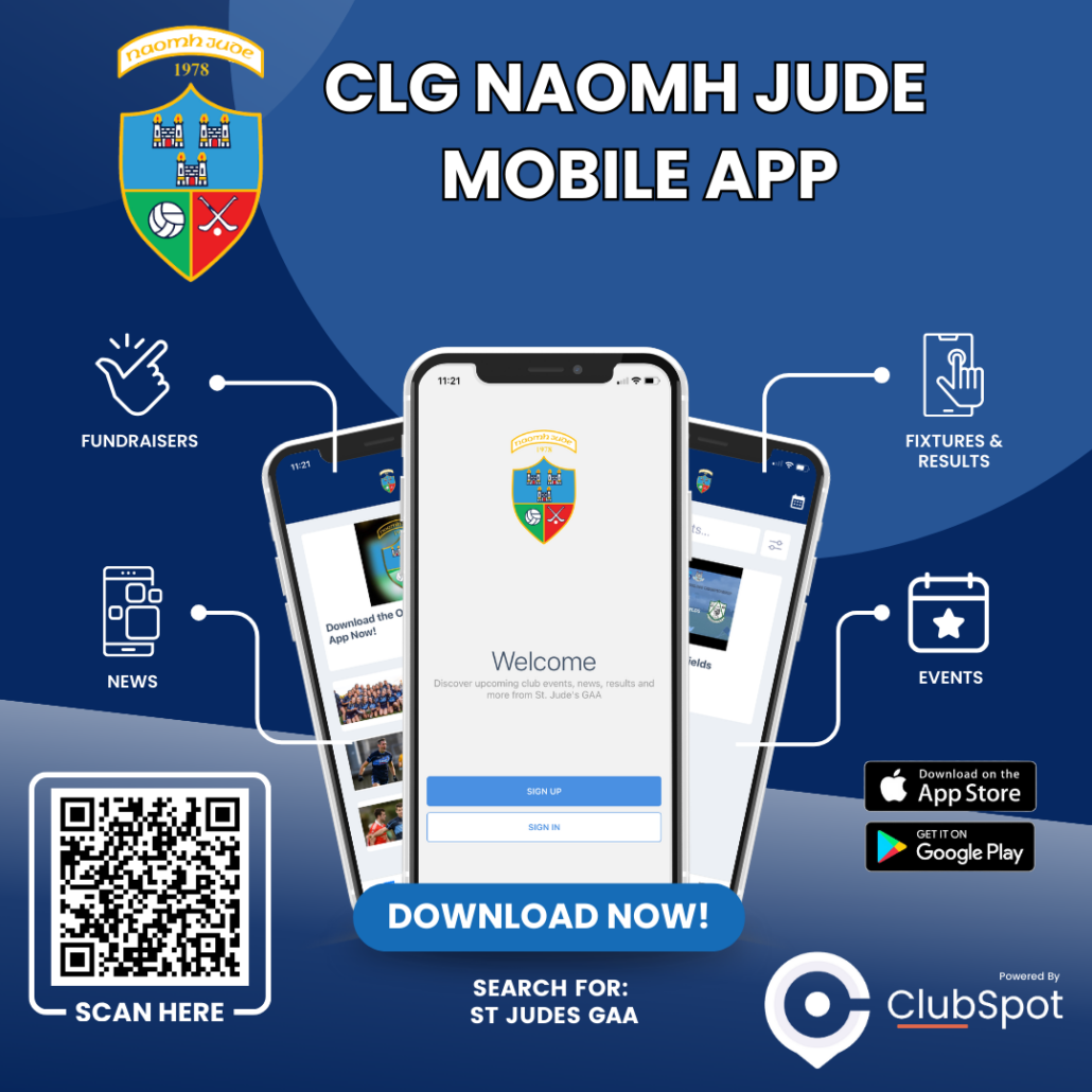 ​We are proud to announce the launch of the new Naomh Jude App! We’re planning to move all team communications over to the app once everyone is set up.